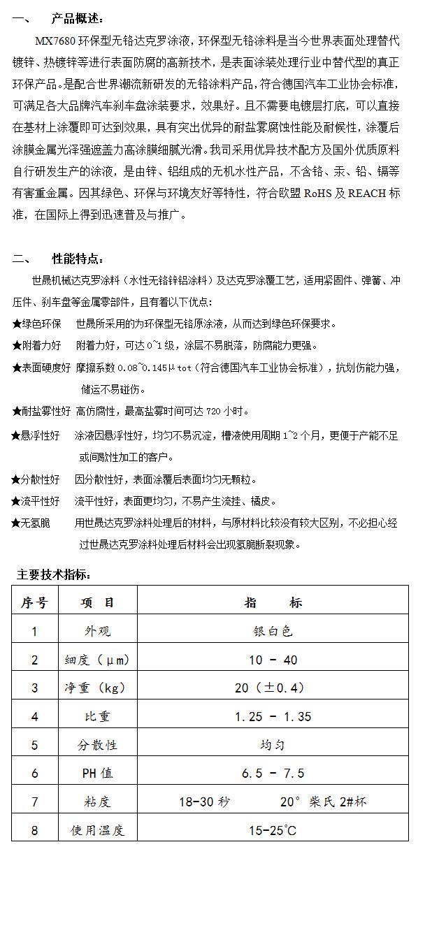 產(chǎn)品名稱:MX7680環(huán)保型無(wú)鉻達(dá)克羅涂液