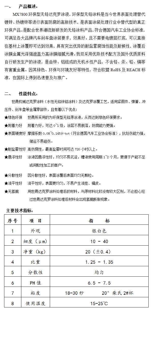 產(chǎn)品名稱(chēng):MX7800環(huán)保型無(wú)鉻達(dá)克羅涂液